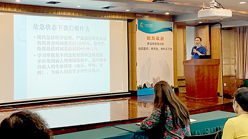 此次培训由综合急诊科、麻醉科、住院病房、口腔颌面外科的五位院内急救专家进行授课。培训内容包括吸痰和吸氧技术、成人基础生命支持、海姆利克急救法、气管插管术、气管切开术、颞下颌关节脱位急诊治疗、创伤急救、急诊工作制度及牙外伤的急诊治疗等急救知识和技能,基本涵盖了医院急救处置和救治所需的能力。此次培训内容精心设计、系统全面,与会人员纷纷表示,此次培训效果非常好,干货满载。
