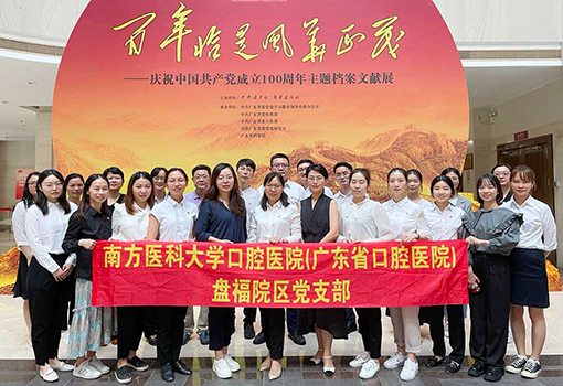 9月8日,口腔医院盘福院区党支部全体党员前往广东省档案馆,参观“百年恰是风华正茂”主题展览。支部书记高海及支部党员共26人参加了此次学习。