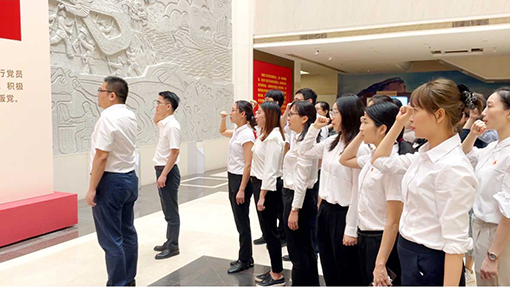 “百年恰是风华正茂”主题档案文献展,聚焦了中国共产党历史上的重大事件、重要会议、重要人物,展示了中国共产党带领中国人民筚路蓝缕、砥砺奋进的百年光辉历程,深刻诠释了伟大的建党精神和我们党不断取得胜利的成功密码和力量所在。在支部书记高海的带领下,全体党员举起右拳,面向鲜红的党旗庄严宣誓,重温入党誓词,牢记初心使命。