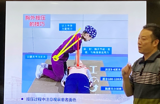 此次培训邀请了有丰富急救经验的广州医科大学附属第一医院急诊科党支部书记张作鹏主任,为院区全体医护人员讲授相关临床急救应急的理论知识和CPR、AED现场操作演示。张主任的课程将理论与临床实践相结合,生动活跃,表达精准,图文并茂,还有视频展示,让大家更全面的掌握急救相关知识和操作技术要点,收获满满。