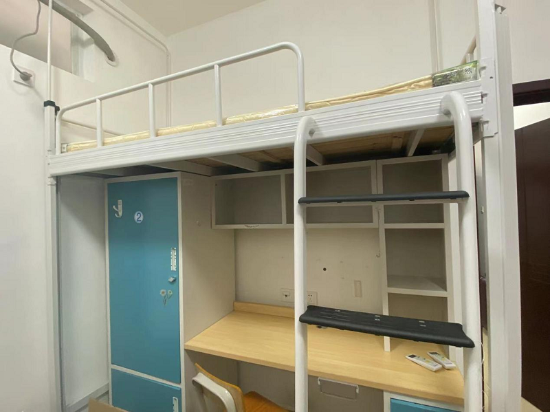 1、学生床数量:上床下桌带书桌衣柜多功能组合床45套。