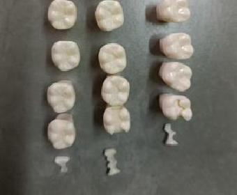 单直根树脂牙带邻合面嵌体,可通过螺丝固定在标准备牙模型上。 |