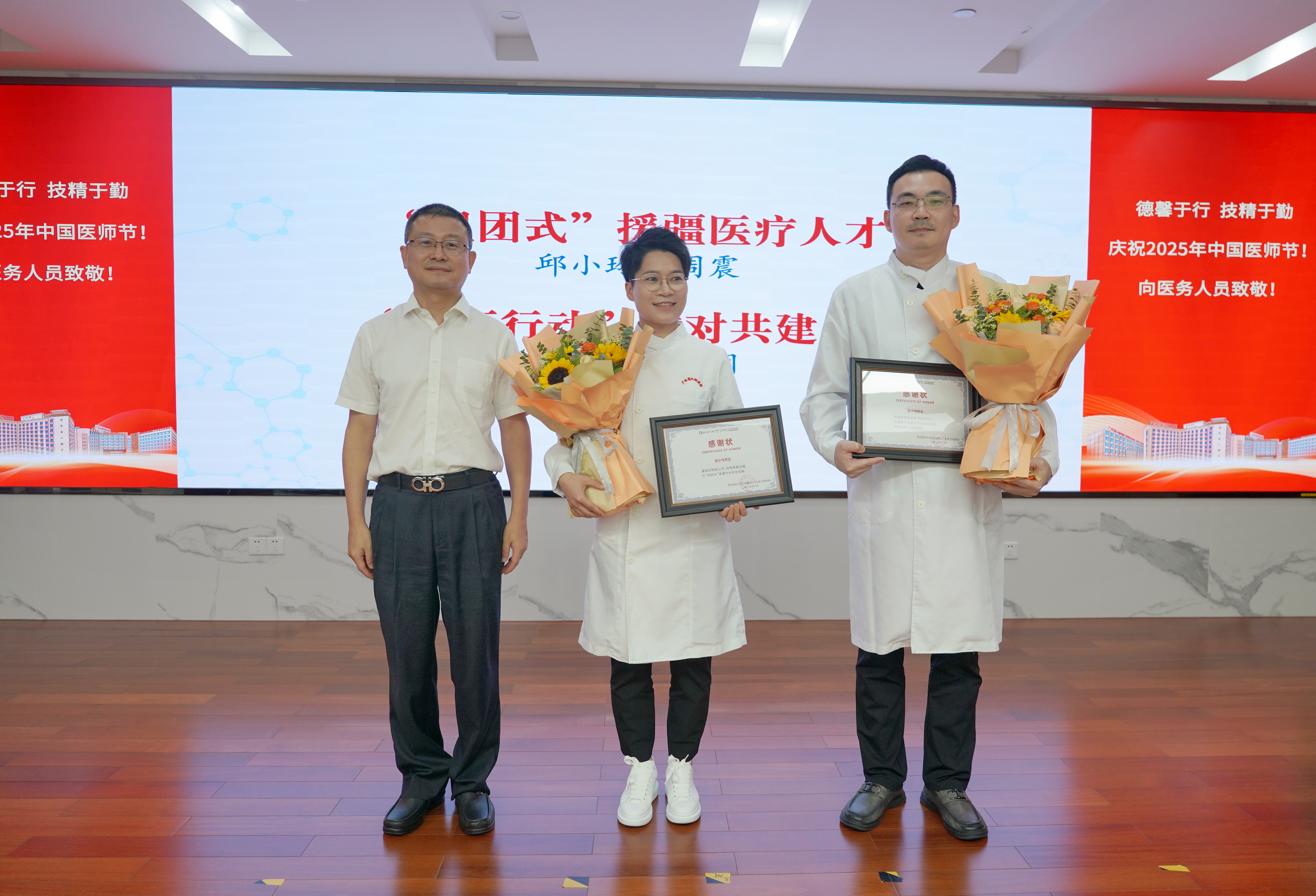 大会对8名荣获“青年医生优秀服务奖”医生、20名医院“好医生”、“组团式”援疆医疗人才及“双百行动”结对共建人才进行了表彰,并向“广州名医”邵龙泉教授、“广州好医生”张文忠主任医师表示祝贺。