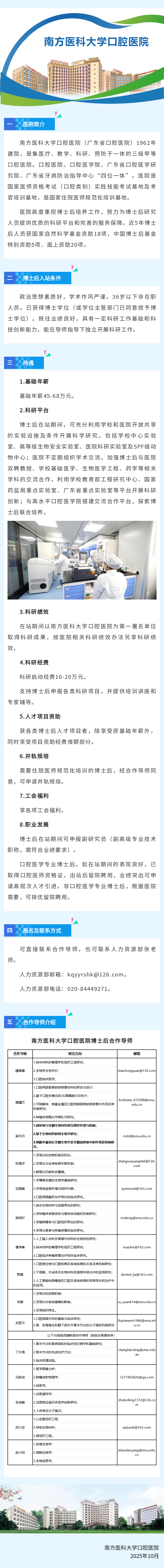 南方医科大学口腔医院2026年博士后研究人员招聘及合作导师介绍