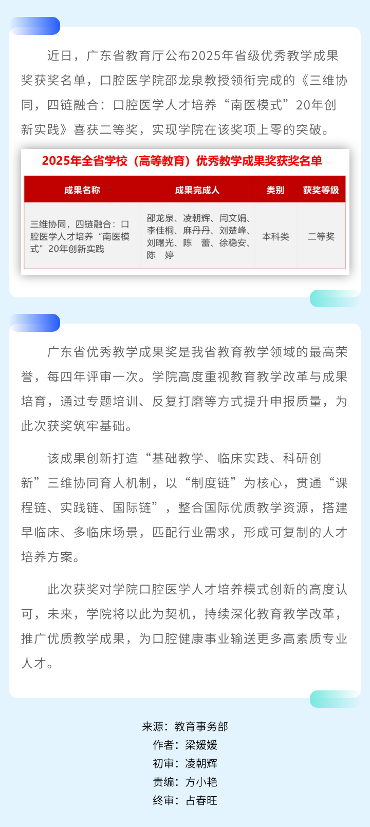 零的突破!口腔医学院喜获省级教学成果奖二等奖