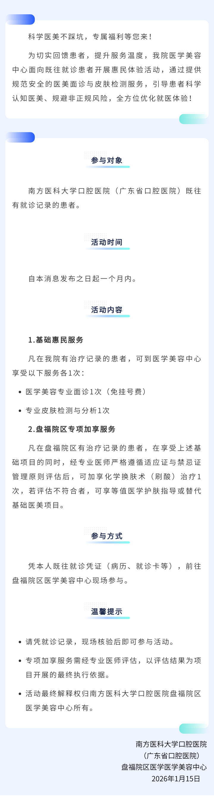 南方医科大学口腔医院(广东省口腔医院)盘福院区医学美容中心惠民活动