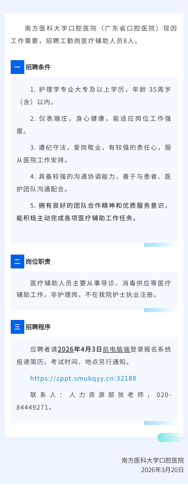 南方医科大学口腔医院医疗辅助人员招聘启事