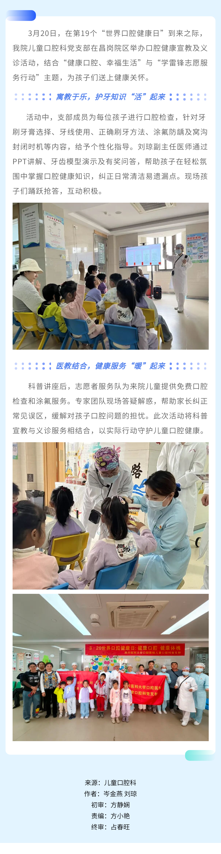 3·20世界口腔健康日|我院儿童口腔科举办宣教义诊活动